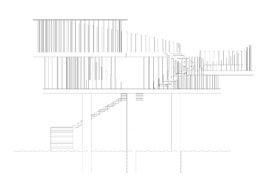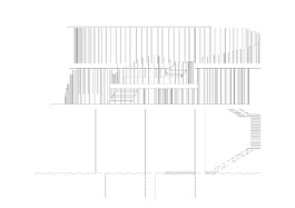 My concept thrives on an open design. Far out on the open sea, a few miles from the Italian mainland, the vastness of the surroundings dominates. This sense of airy freedom is conveyed by a structure based on slender steel columns. These fine, louver-like columns support the organically shaped platforms of the nightclub. Various loops and intricate angles provide spaces for different functional areas.