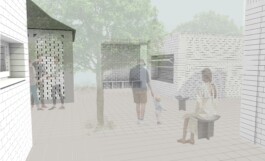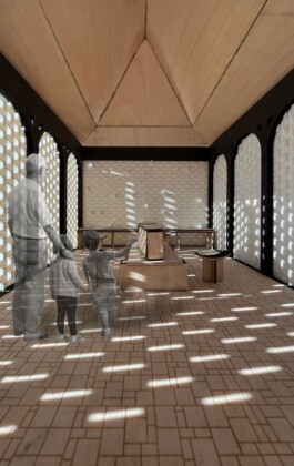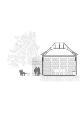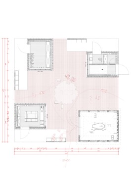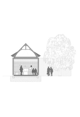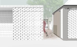 The "Patio" design envisions a space for mourning, offering bereaved individuals a shared environment to bid farewell to a departed loved one. The building is accessible from both the cemetery and the botanical garden. The design comprises four structural elements: three identical newly constructed volumes and the existing building. Together, these four elements frame a central courtyard, seamlessly merging the guests' arrival with the moment of farewell.