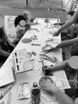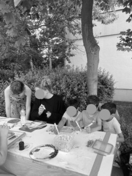 Every Tuesday, we visited Tulpenbrunnen with various activities to engage with the local community. Initially, we used low-threshold questions such as "What’s your favorite food?" paired with a tablecloth for painting, to foster playful conversations. Over time, we addressed more specific topics, such as "What would you change if you were in charge of Tulpenbrunnen?"