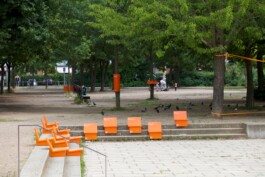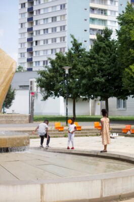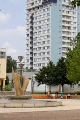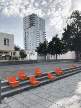 At Tulpenbrunnen in Halle-Neustadt, we designed our Tulpeninsel with vibrant orange objects—a space that breaks the monotony of everyday life while highlighting the vibrancy of this location. Through playful and creative approaches, we used the area to foster dialogue and collectively explore and experience the Tulpeninsel.
